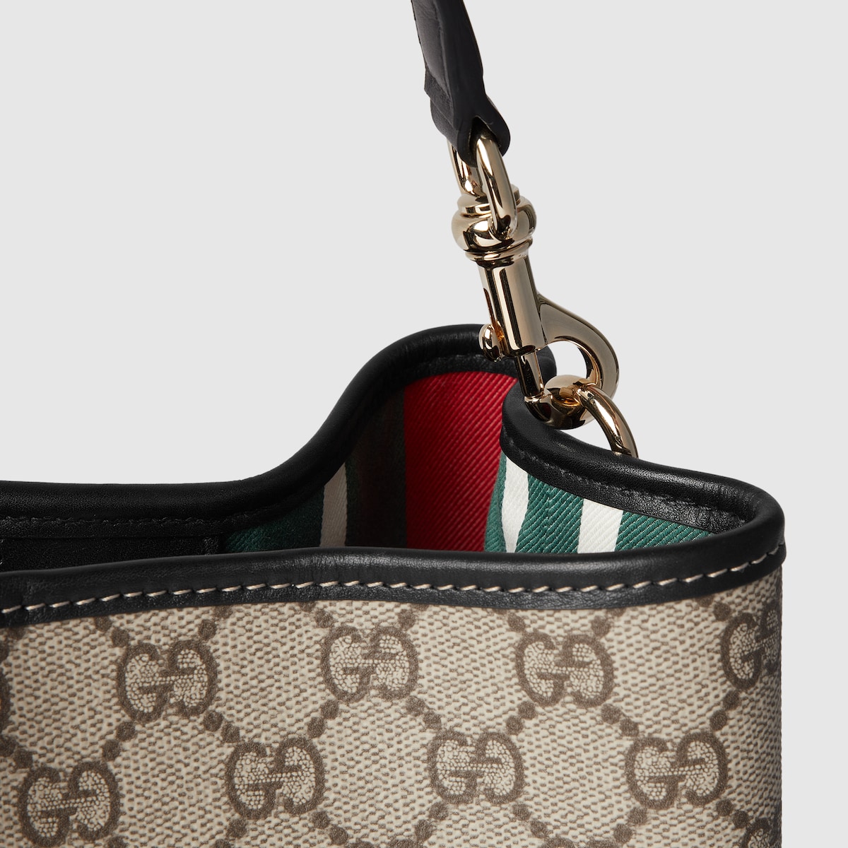 The new GG Emblem collection reinterprets the House’s history of elegance and craftsmanship. This mini bucket bag highlights functional design with an interior compartment.