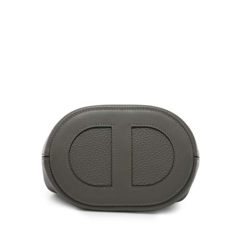 The interior is lined with Gris Meyer natural leather, with one slip pocket and top clip closure.