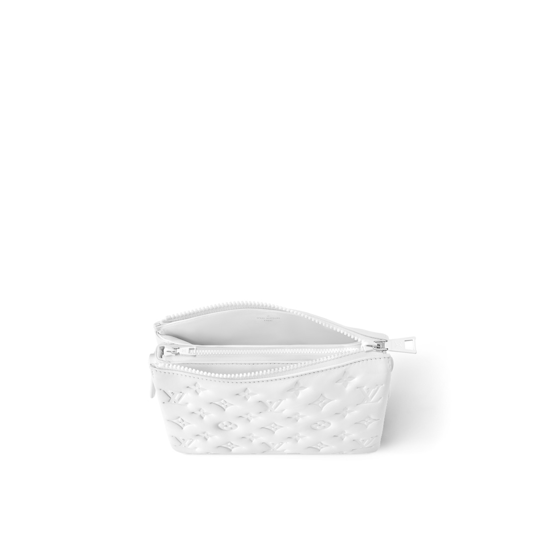 Crafted from matte lambskin with Monogram embossing, the Coussin BB is adorned with a tone-on-tone chunky chain for a monochromatic finish. It belongs to the Black Out collection, which explores a graphic approach to iconic silhouettes. This timeless style can be worn multiple ways, and opens to reveal a capacious interior for everyday essentials.