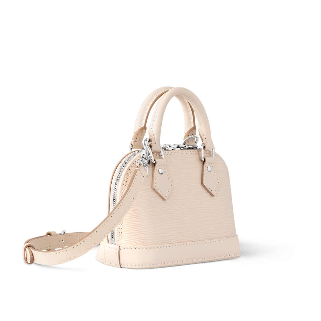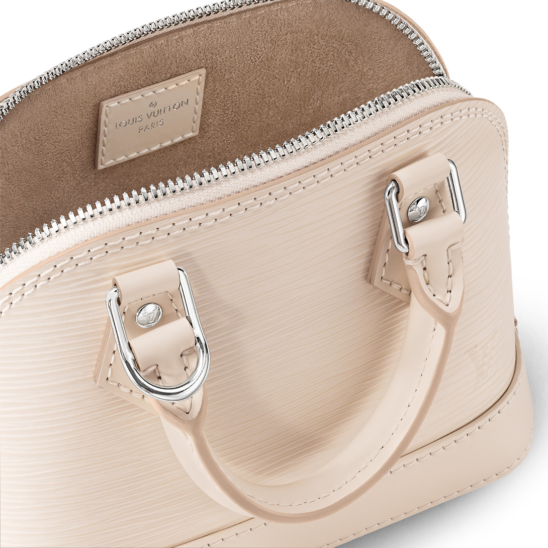 The Nano Alma is a miniature replica of the iconic Alma bag, which is crafted from emblematic Epi grained leather. Though small in size, this bag is big on functionality, with a surprisingly roomy interior that can hold a smartphone, keys, cardholder, travel scent and more. Its two handles and removable, adjustable shoulder strap offer different carry options.
