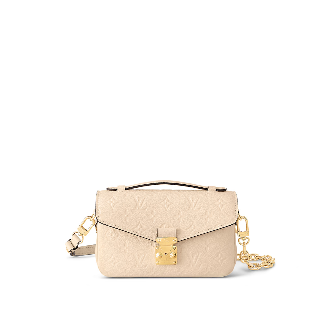 Made from embossed Monogram Empreinte leather, the Pochette Métis handbag blends signature House style and contemporary detailing. The on-trend East-West silhouette is highlighted by a heritage S-lock and removable short chain, both cast from gold-finish metal. With its well-organized interior and adjustable smart strap, this compact bag adapts perfectly to active lifestyles.