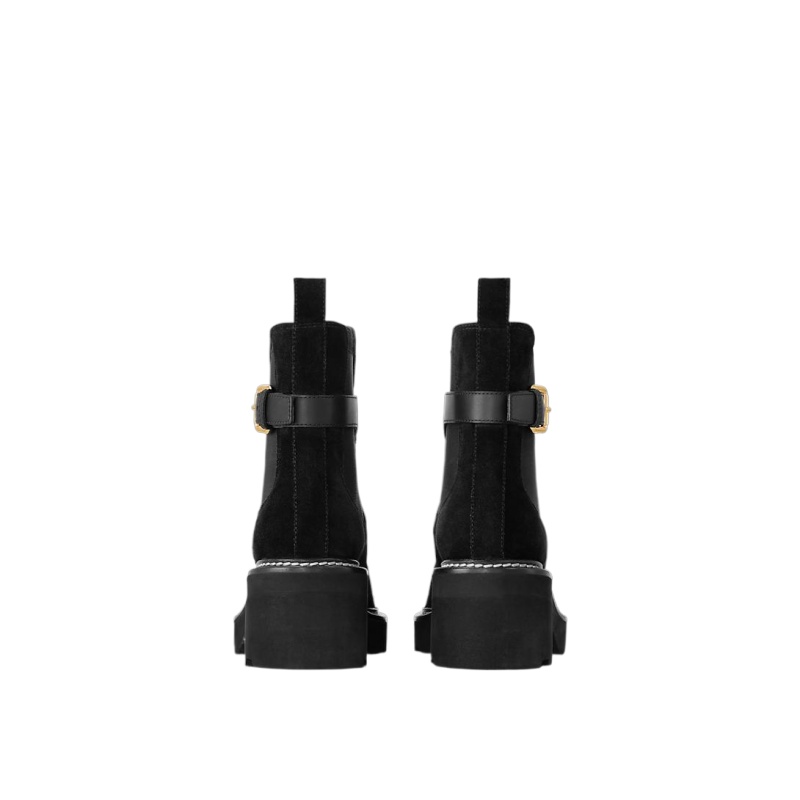 Crafted from velvety suede calf leather, the LV Beaubourg ankle boot nods to a Chelsea boot with its elastic side panels, while the leather belt detail references the ready-to-wear collection. Signed with a Louis Vuitton-embossed leather label, this easy-to-wear style comes on a sturdy heel and chunky yet lightweight micro outsole.